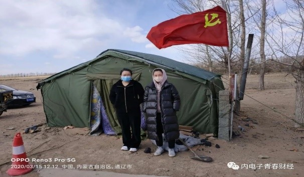 文秘171班张珊,中共预备党员,在内蒙古通辽市科尔沁左翼中旗花吐古拉镇人民政府进行顶岗实习,在疫情爆发后第一时间加入疫情防控工作,并进行对返乡人员信息上报的审核工作,以及复工复产返程人员的信息审核工作,从2020年1月31日直至学校下发暂停实习生顶岗实习工作的通知。在3月5日暂停顶岗实习后,第二天在村里帮助村委会干部进行各类上报表格的填写以及卡口值守工作。
