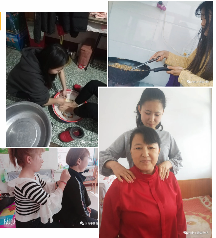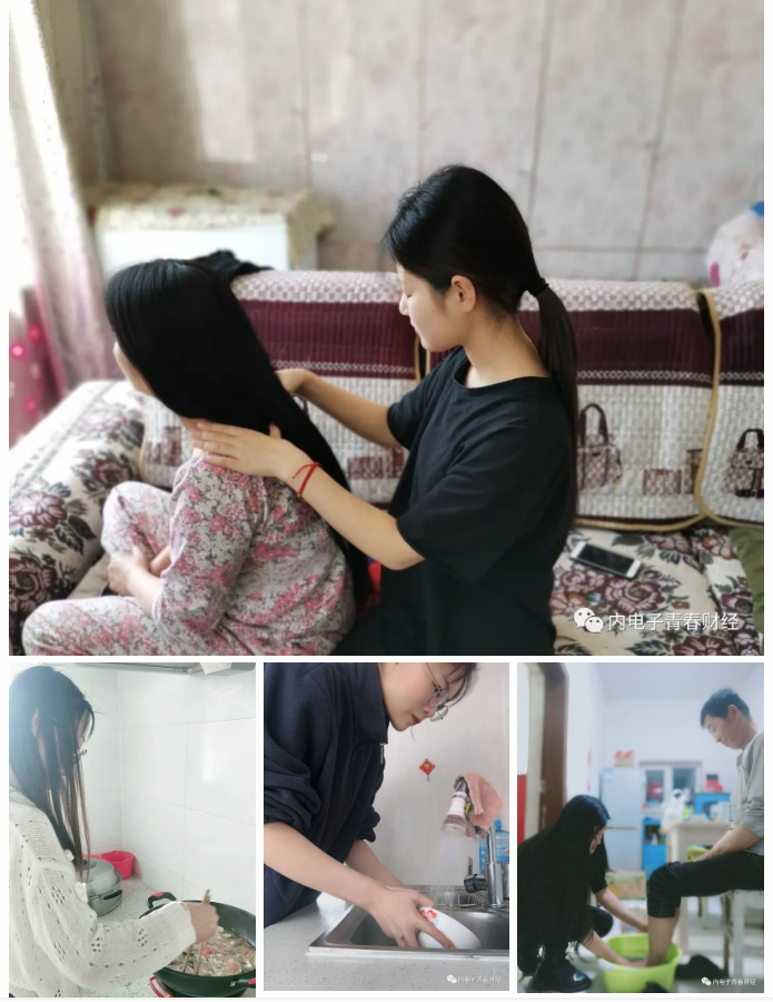 仲春二月,疫情原因原本计划好的出游、娱乐、聚会付之一炬,换来了与父母不易的独处。活动期间,同学们秉承感恩之心,为父母泡脚、捶背、做一顿拿手的饭菜,体会父母生活中的艰辛与不易。当父亲的淡淡的皱纹与母亲的些许白发映入眼帘,感恩之情更铭记于心。