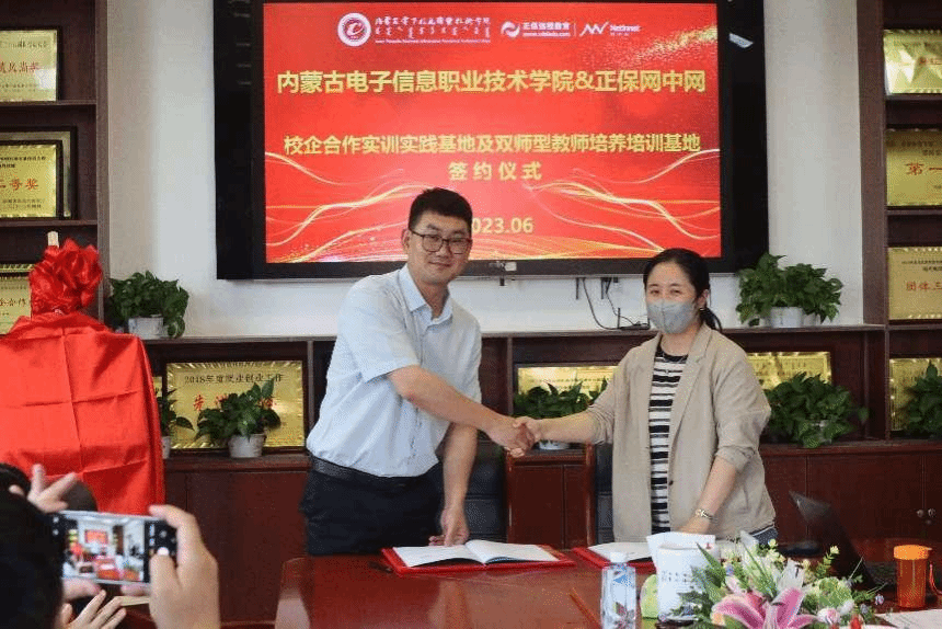 为进一步深化校企合作、助推人才培养,6月9日,电子商务学院与正保网中网软件有限公司进行校企合作实训实践基地及“双师型”教师培养培训基地签约揭牌仪式,校企双方正式签订合作协议,共同启动校企合作实训实践基地及“双师型”教师培养培训基地的建设,开启校企合作新篇章。