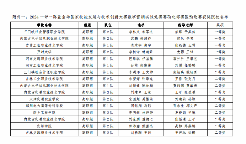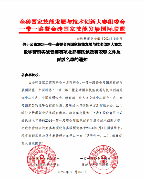 6月3至4日,2024一带一路暨金砖国家技能发展与技术创新大赛——数字营销实战竞赛赛项北部赛区预选赛在三门峡市举办。电子商务学院学子在比赛中获得一等奖和二等奖各一项,并均进入全国总决赛。