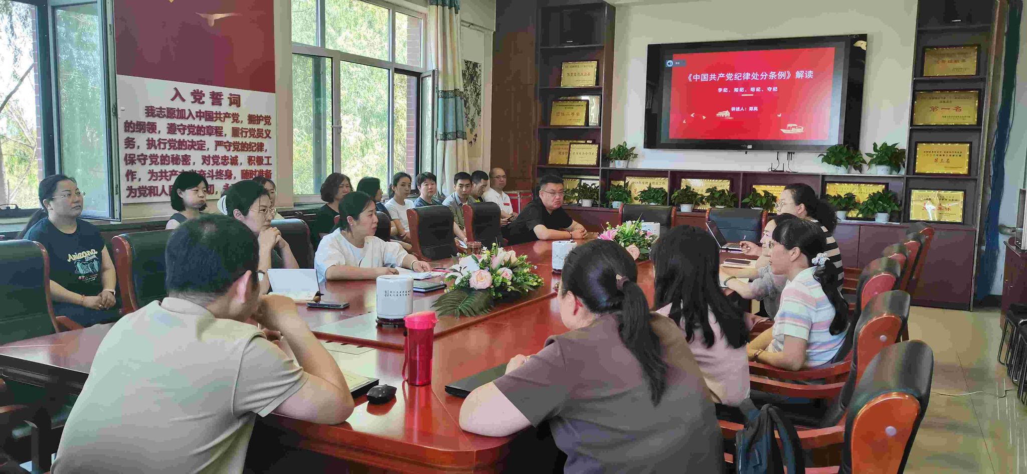 按照党纪学习教育安排,6月13日,学院党总支书记郑凤以《<中国共产党纪律处分条例>解读》为题讲授党纪学习教育专题党课。全体党员参与学习。
