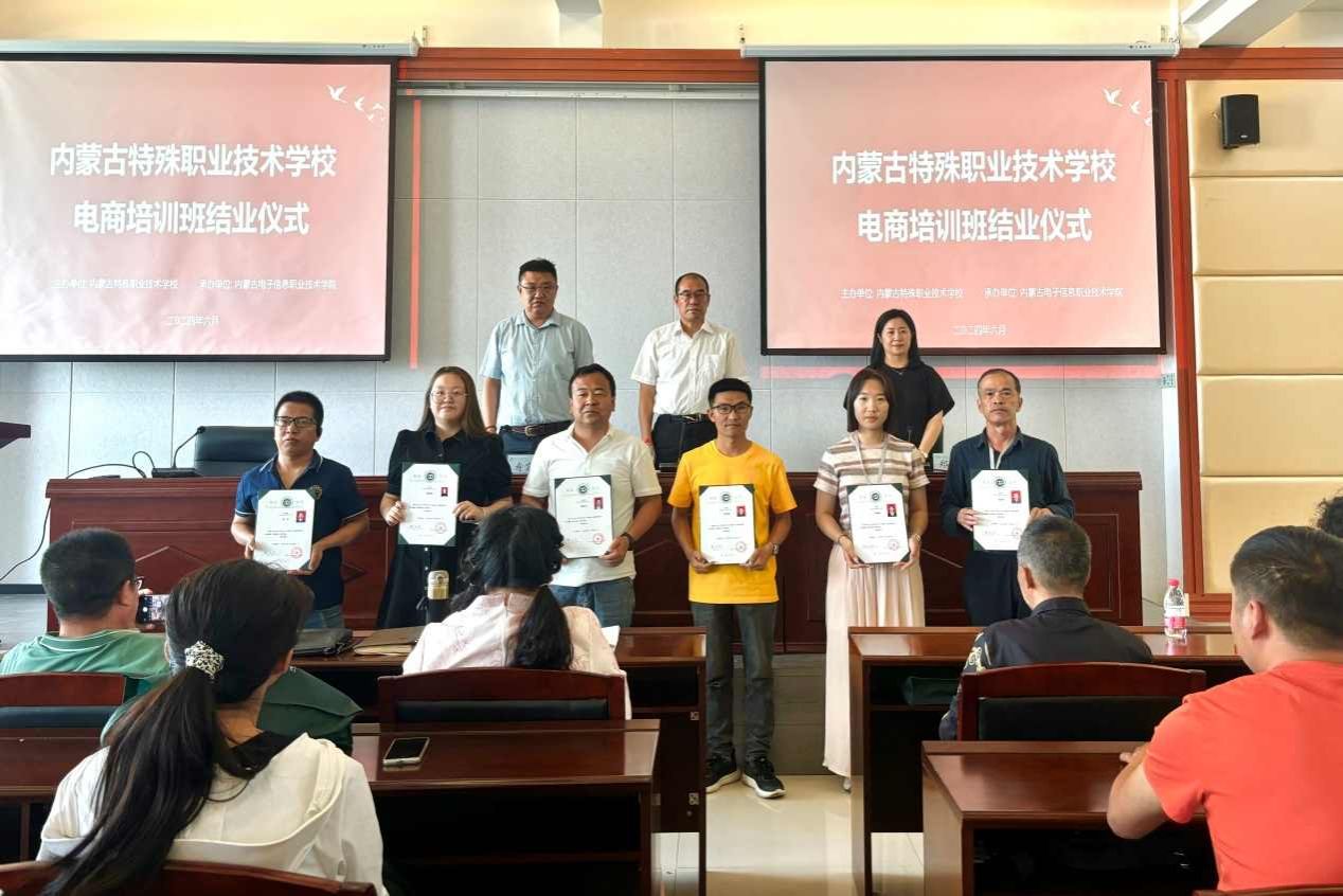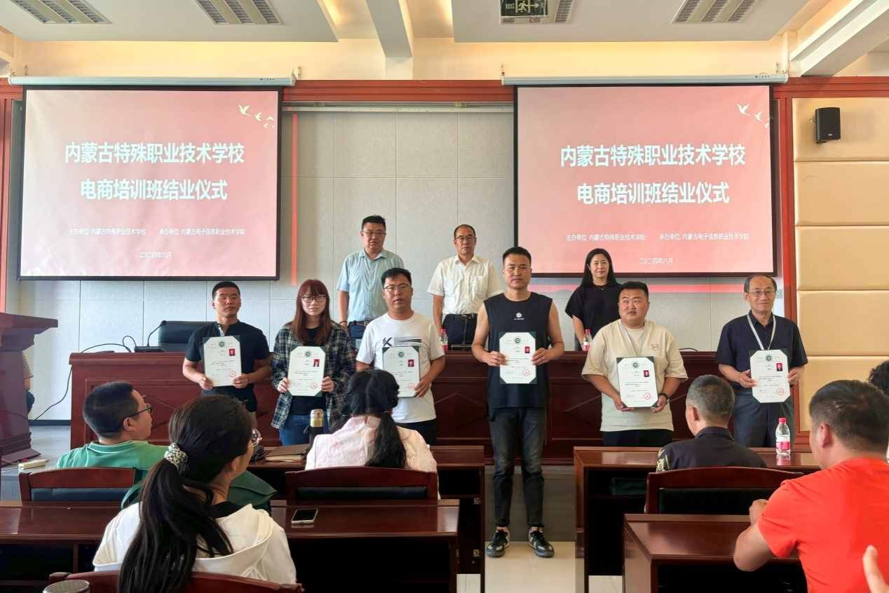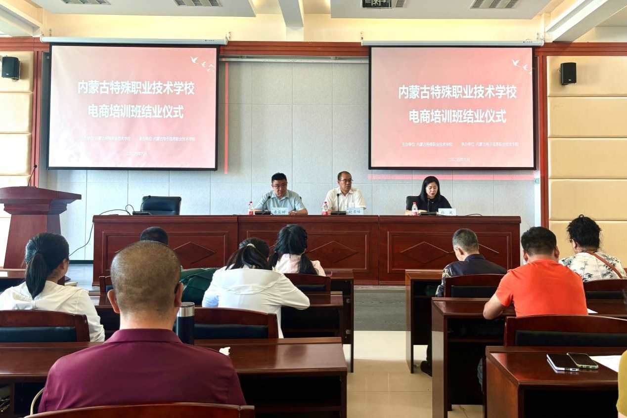6月17日下午,内蒙古特殊职业技术学校电商培训班结业仪式在我校图书馆举行。内蒙古特殊职业技术学校副校长赵彦峰,电子商务学院党总支书记郑凤,副院长寿震坤,电子商务学院全体教师及50余名参训学员出席了结业仪式,结业仪式由寿震坤主持。