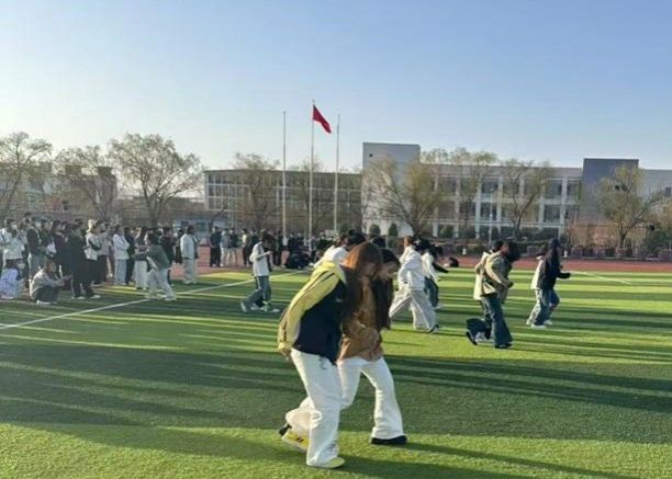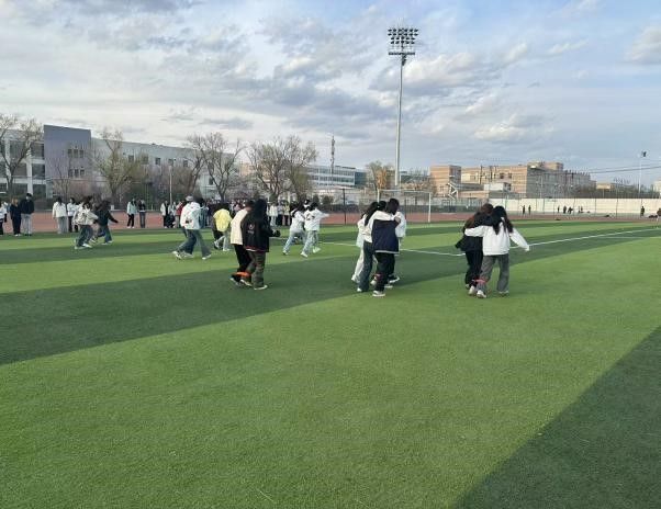 比赛现场气氛活跃,随着发令枪响,参赛宿舍两两成组,用绑带将脚踝相连,以 “同频共振” 的姿态奋勇向前。赛场上,既有步伐整齐、默契十足的 “闪电小队”,也有因节奏错乱险些跌倒却互相搀扶、重新启程的队伍。观众席上,此起彼伏的呐喊声、加油声交织成青春乐章,为选手们注入无限动力。