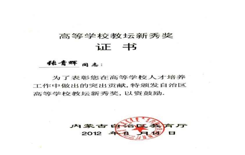 公开发表论文10余篇,参编教材五本,主持自治区课题1项,校级课题1项,2016年,荣获校级教坛新秀。