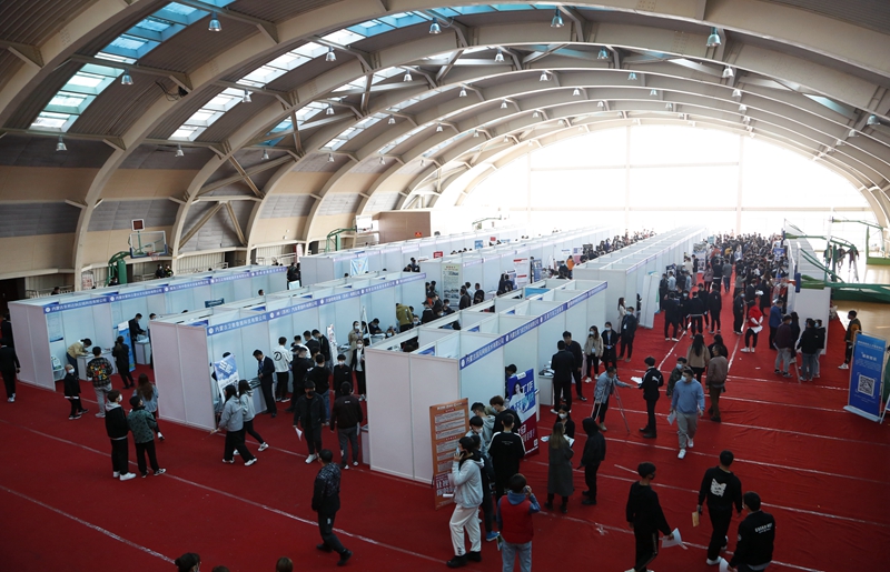 10月30日下午,以“稳就业政策助力·保就业服务筑桥”为主题,由内蒙古人社厅、内蒙古退役军人事务厅、内蒙古总工会、内蒙古工商联主办,内蒙古人力资源公共服务中心、内蒙古高校毕业生就业指导中心、内蒙古和林新区管理委员会、呼市人才服务中心等多家单位协办的2020年金秋招聘月活动暨内蒙古电子信息职业技术学院2021届毕业生人才供需洽谈会在学校文体中心二楼举行。来自区内外各类国有企业、独资企业、上市公司、大中型企业等142家用人单位,提供了涵盖电子信息、智能制造、生物科技、网络技术、航天信息、软件开发等领域的招聘岗位503个,现场共3070名2021届高校毕业生入场参会。在本次人才供需洽谈会上,投递简历8388人次,与企业达成初步就业意向4719人次,搭建了高校毕业生求职择业与优质企业人才需求的双选服务平台,进一步拓宽就业渠道、稳定就业形势、缓解就业压力,实现内蒙古电子信息类高校毕业生更高质量和更充分就业。