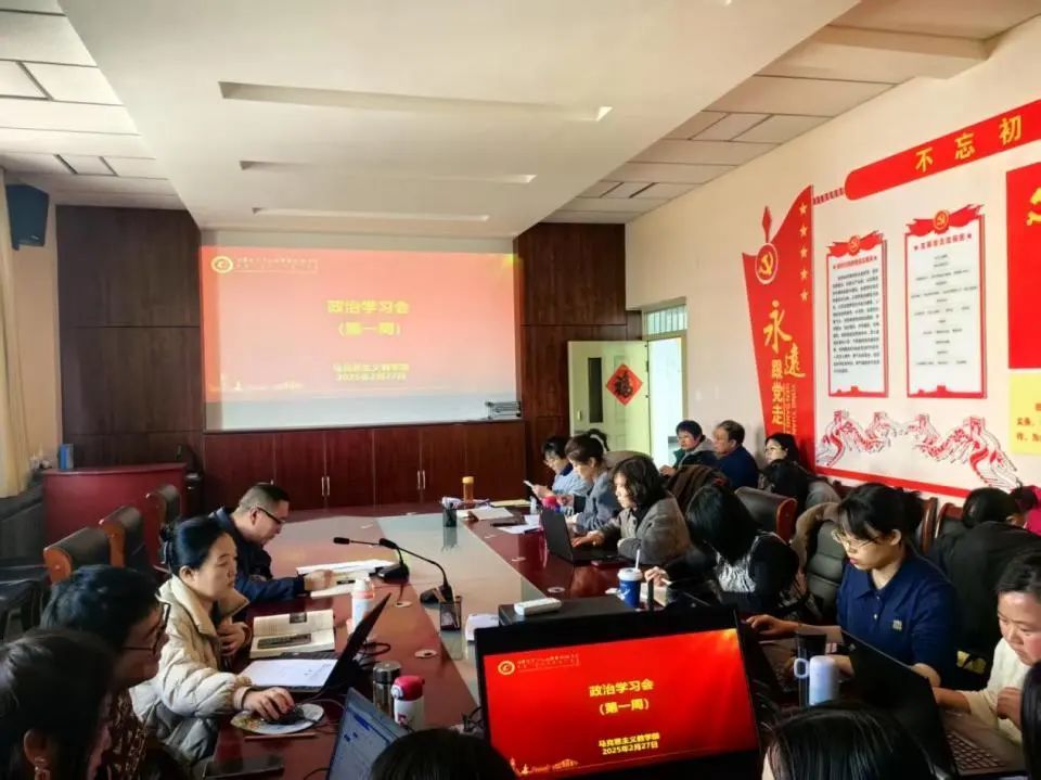 2025年2月27日下午马克思主义教学部召开了第一周政治学习会,马克思主义教学部主任贺栋主持会议,部门全体教师参加会议。