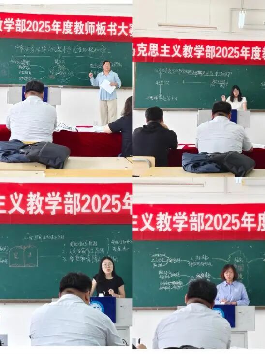 9月2日,马克思主义教学部在教学楼D302教室举办了2025年度教师板书大赛。本次大赛聚焦思政课教学核心能力提升,旨在通过以赛促学、以赛促练,进一步规范教师板书书写标准、提升板书设计水平,夯实教师教学基本功,充分展现思政课教师的专业素养与教学风采,为思政课堂提质增效注入新动能。