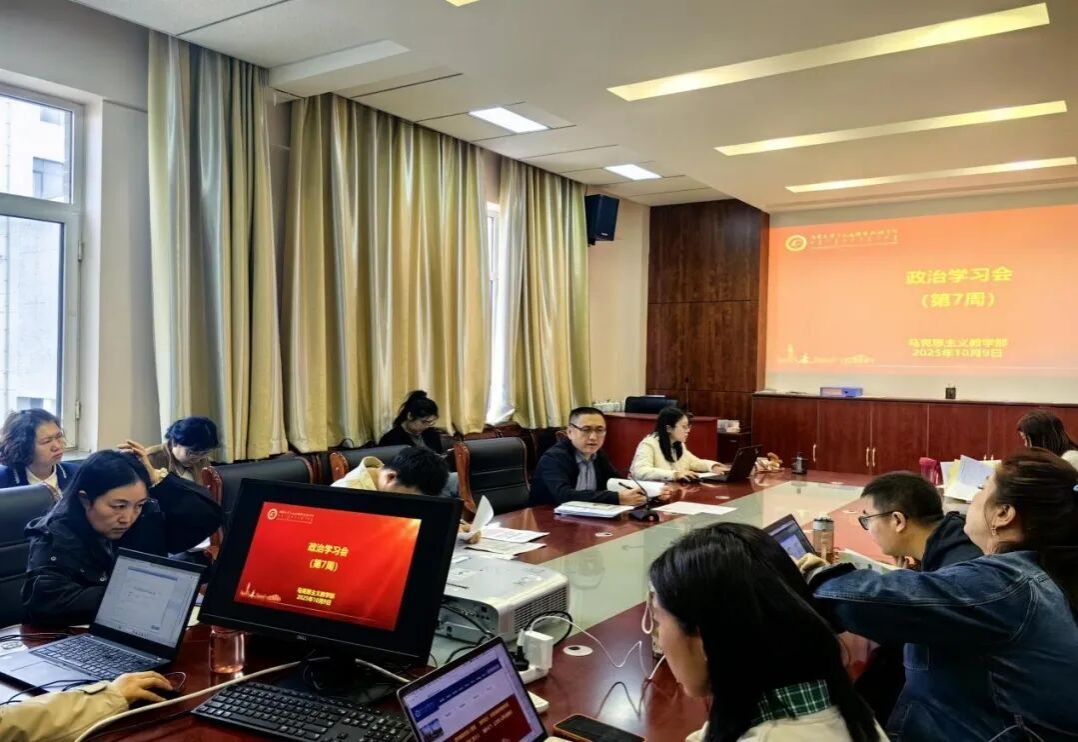 为切实提升思政课教师理论素养与教学能力,马克思主义教学部于10月9日下午组织召开第七周政治学习会,部门全体教师参会。