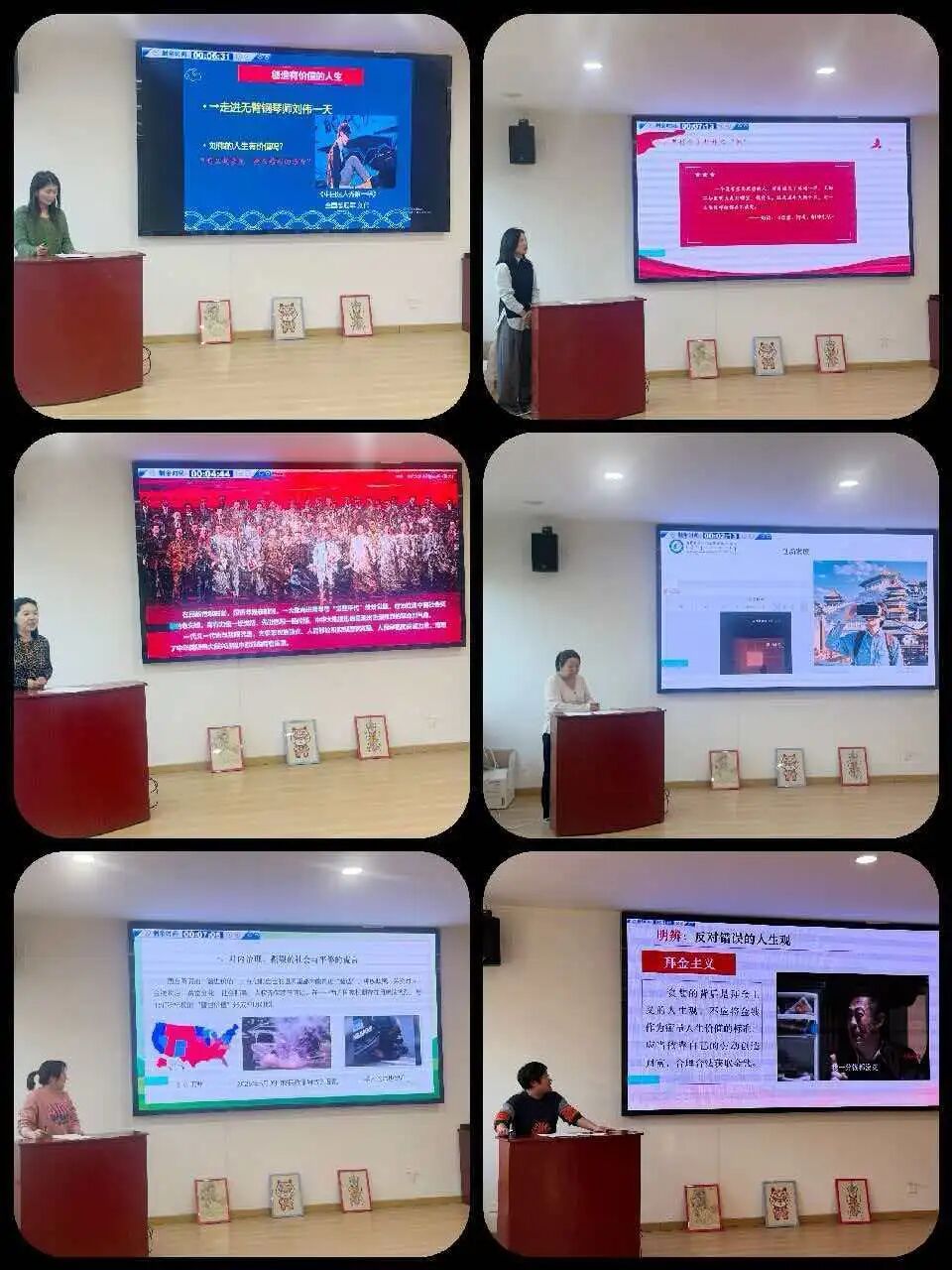 本次选拔赛紧扣思政课思想性、理论性、亲和力、针对性核心要求,分两大板块有序开展。萌新磨课环节,3位年轻教师紧扣课程重难点,立足学情设计教学环节,以鲜活案例、清晰逻辑展现教学潜力,在打磨中理清教学思路、优化授课细节;骨干练兵环节,8位骨干教师深耕教学创新,将党的创新理论与社会热点、学生实际相结合,灵活运用案例教学、情景互动等多元方法,既彰显扎实理论功底,又展现出思政课的育人温度,为青年教师树立了教学标杆。
