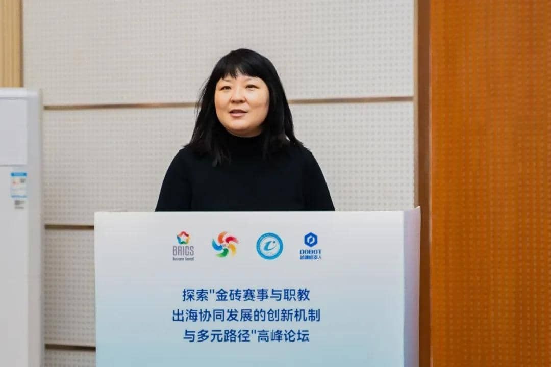 崔雪艳作了题为《金砖+国家合作机制下技能发展和技术创新成果助力职业教育走出去》的专题报告。以金砖合作机制、金砖伙伴国及金砖+合作机制的发展为切入点,从中国职业教育“走出去”的含义、面临的挑战,“双高校”建设中的国际化指标,培训基地(金砖工坊)、合作办学(金砖联合学院)建设,专业技能互认等方面介绍了金砖+技能发展与技术创新成果设计在助力职业教育国际化发展过程中起到的重要作用。