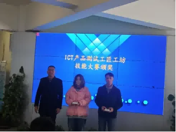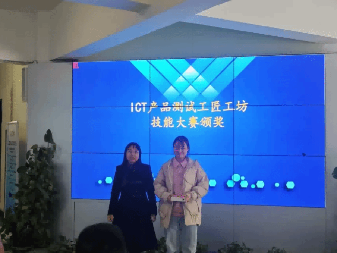 接下来对在工匠工坊中表现突出的同学进行表彰,为ICT产品测试工匠工坊企业奖学金获得者和工匠工坊技能大赛获奖者颁发奖品。