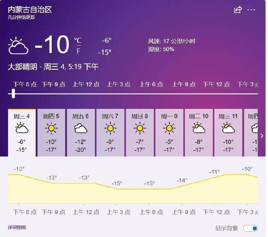 呼和浩特市未来七天天气预报
