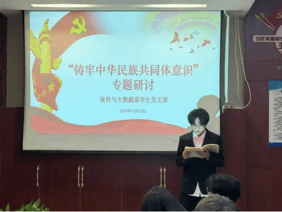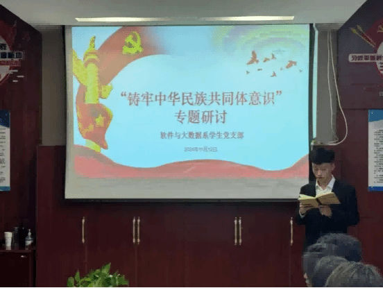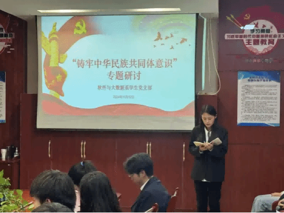 2024年11月12日晚,软件与大数据系学生党支部组织第40期全体发展对象于教学楼A201召开“铸牢中华民族共同体意识”专题研讨会,学校北疆青年先锋社列会聆听。