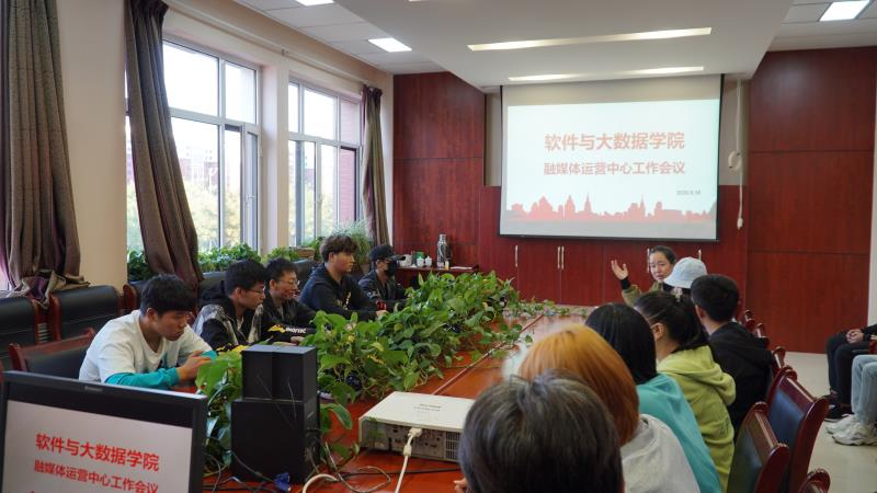 新学年新学期,为更好的总结经验、发现不足,进而鼓足干劲、补齐短板,提高部门成员的综合素养和工作能力,全面调整部门的工作状态,扎实开展新学期的各项工作,软件与大数据学院融媒体运营中心于9月18日下午17:00在A201会议室召开新学期工作会议。软件学院团总支书记李茜雯老师及共青团辅导员郭凯琪老师主持会议,融媒体运营中心全体成员到场聆听参会。