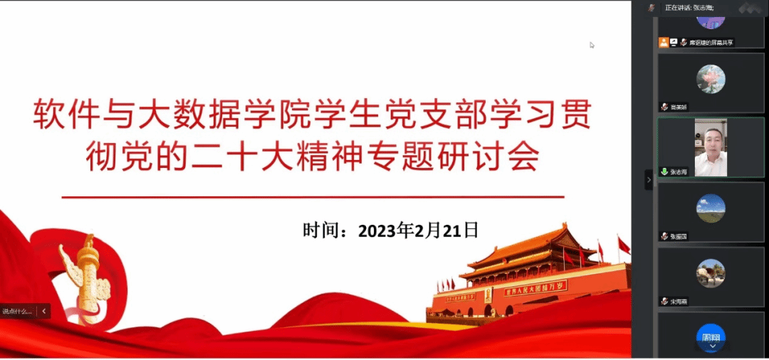 为深入学习贯彻落实党的二十大精神,扎实推进党的建设工作,软件与大数据学院学生党支部2月21日组织召开学习贯彻党的二十大精神研讨会。全体党员参加会议,会议由党支部书记张志海主持。会上,党员同志们重点围绕学习贯彻党的二十大精神开展研讨,能充分各自结合自身实际进行研讨交流。