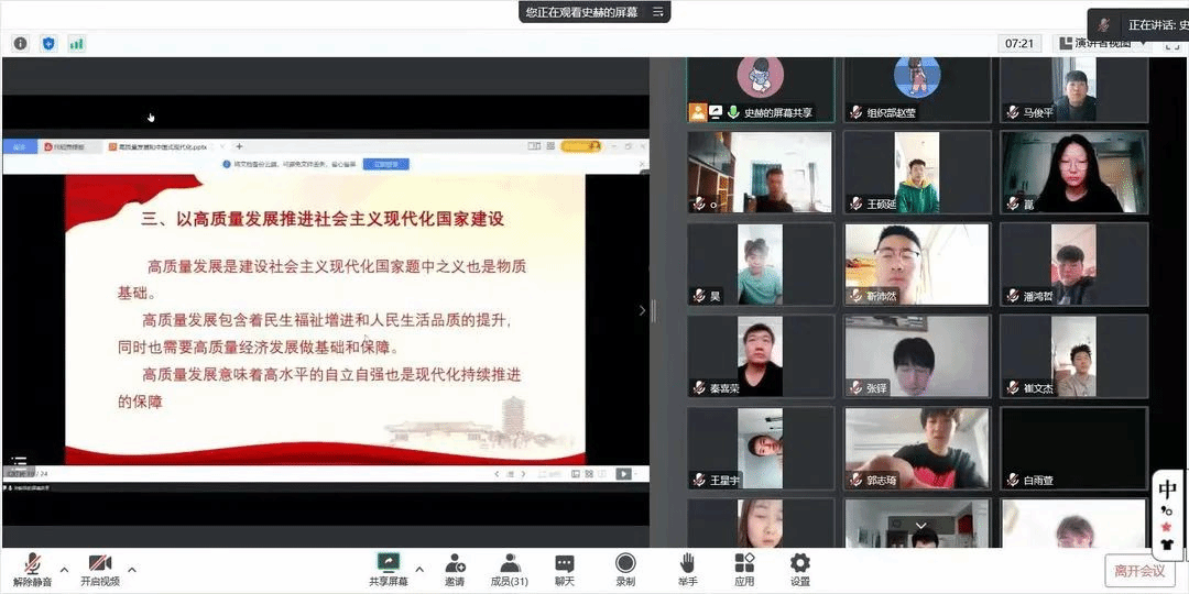 2022年12月16日,内蒙古与北京大学手拉手举办学习贯彻党的二十大精神理论线上研讨会隆重举办,软件与大数据学院团总支组织我院全体学生进行观看。本次会议主要以中国式现代化与中国共产党思想历史、中国式现代化向世界宣示的两条基本逻辑及中国式现代化:从哪来?是什么?三个方面为重点展开热烈研讨。