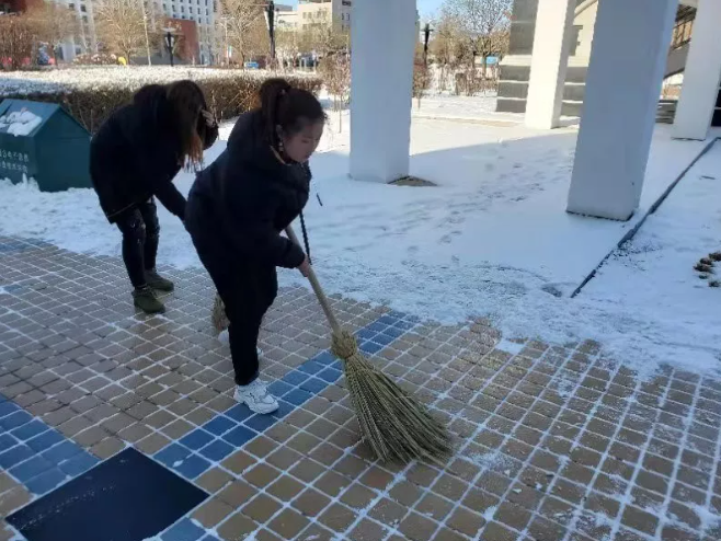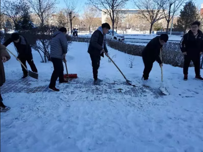 12月16日夜,呼和浩特市大范围降雪,电子学院的校园里一片银装素裹,美不胜收。雪景优美的同时,也为我校师生的日常出行带来了不便。为此,软件与大数据学院学生党支部于2019年12月17日组织入党积极分子和学生会成员,利用午休时间深入校园开展积雪扫除活动。