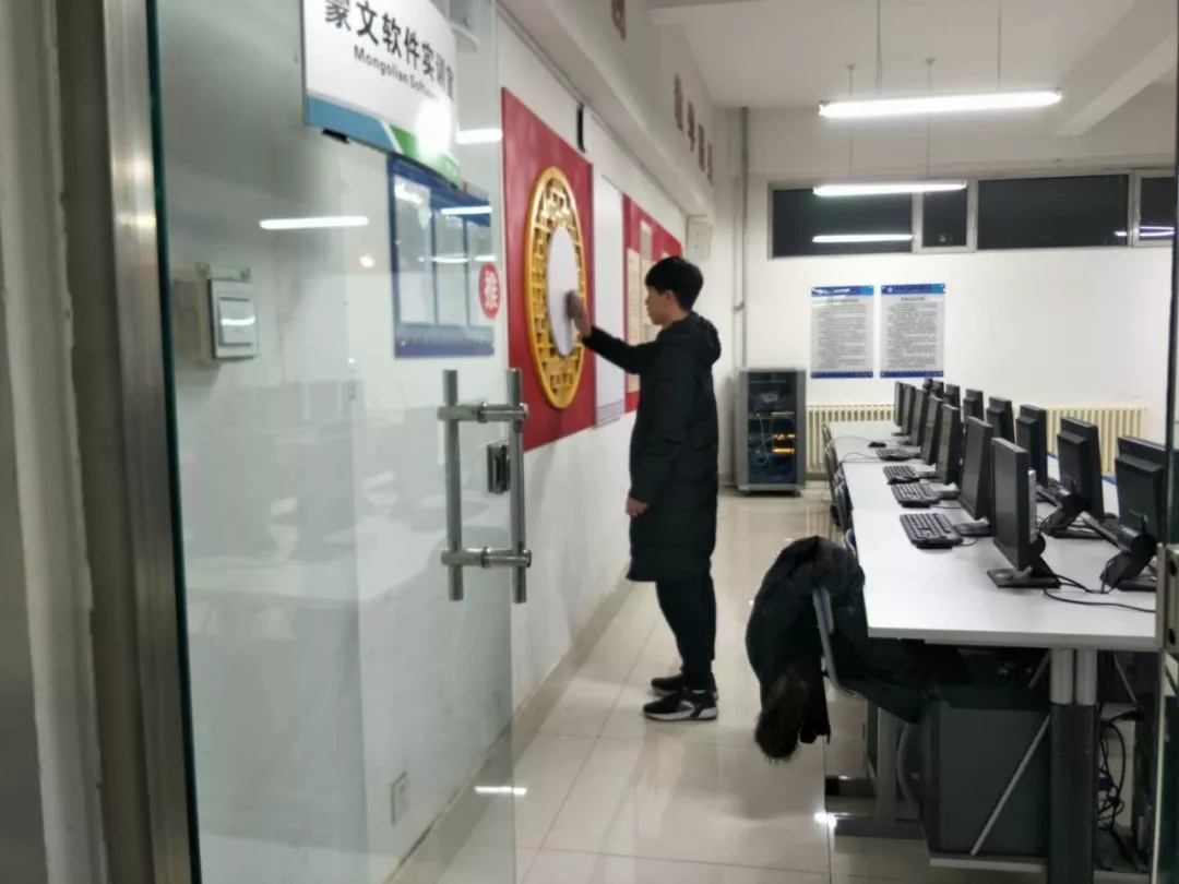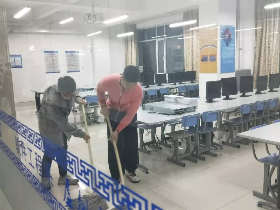 12月18日下午,为响应学院校园文明建设号召,营造良好的学习环境,我系入党积极分子利用课余时间对实训楼A座机房进行了大扫除。