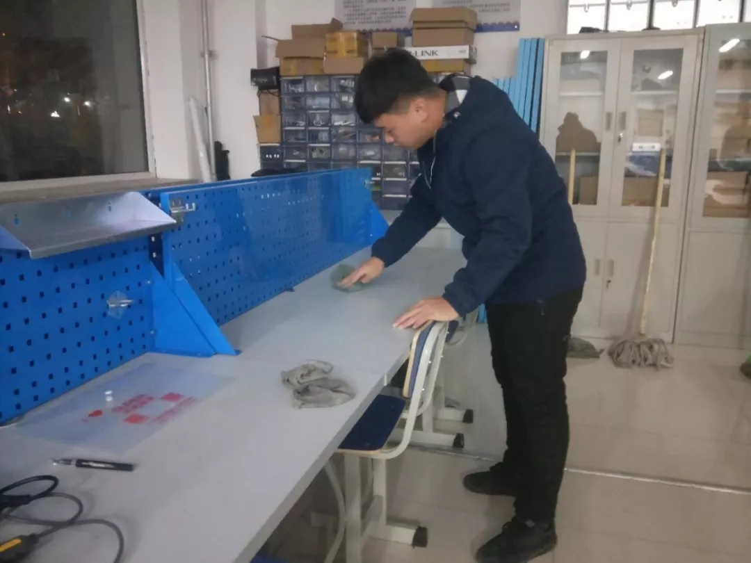 入党积极分子们分工合作,默契配合,仔细认真的进行打扫。他们干劲十足,电脑、桌面、玻璃、窗台……目之所及的地方都是他们清扫的对象。