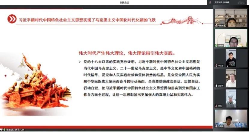 为深入学习宣传贯彻党的二十大精神,引导党员干部切实把思想认识统一到党的二十大精神上来,2022年12月4日晚,软件与大数据学院学生党支部召开党的“二十大”精神读书班第三讲,学生党支部全体党员共同参会,会议由学院党总支副书记、学生党支部书记张志海主持,党总支组织员张维娜领学。