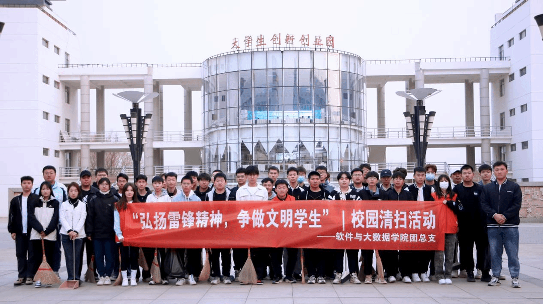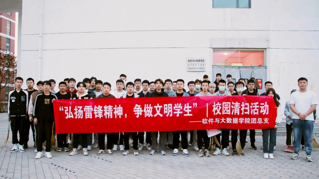 在这热情洋溢的三月,为弘扬雷锋精神,美化校园环境,让广大师生在工作、学习、生活中形成学习雷锋的良好氛围,以行动传承雷锋精神,树立校园文明新风,让雷锋精神永驻每个软件与大数据学院学子心中,软件与大数据学院团总支特开展“建设雷锋精神,建设美丽校园”主题清扫活动。