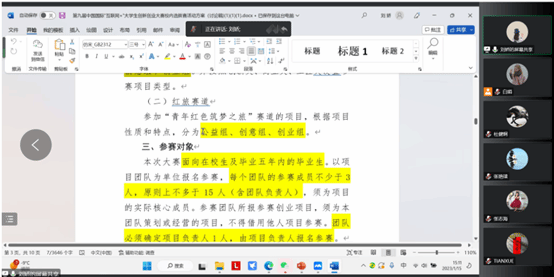 会上,刘娇对第八届“互联网+”大赛的组织参与情况进行汇报,同时解读了学校《第九届“互联网+”大学生创新创业大赛校内选拔赛活动方案(讨论稿)》内容。