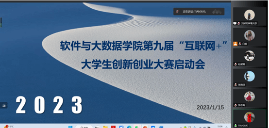 为进一步提升学生创新创业能力,做好第九届“互联网+”大学生创新创业大赛项目选拔培育工作,1月15日下午,软件与大数据学院通过线上召开第九届“互联网+”大学生创新创业大赛启动会。软件与大数据学院全体教师及全体班主任参加会议,会议由副院长田雪主持。