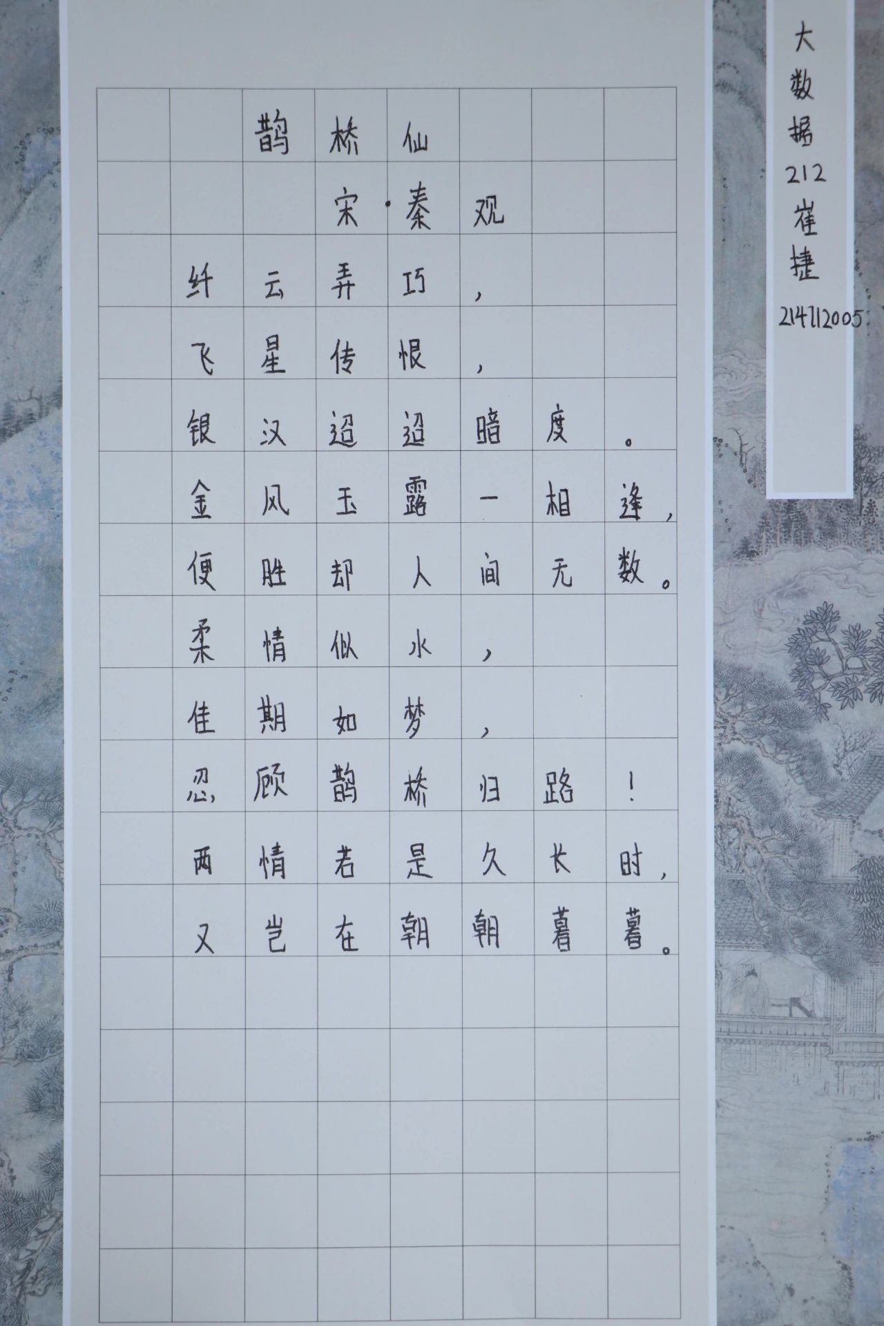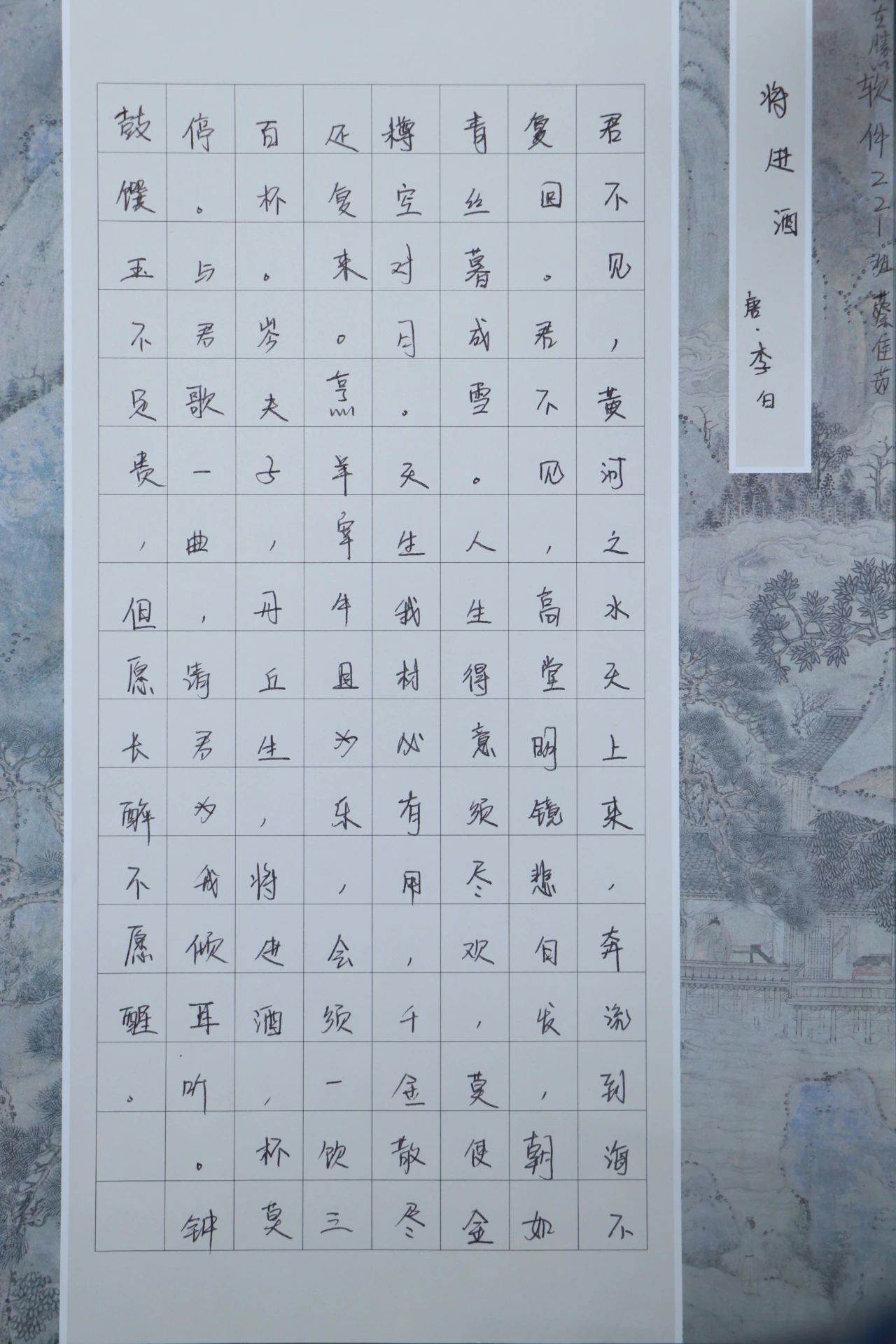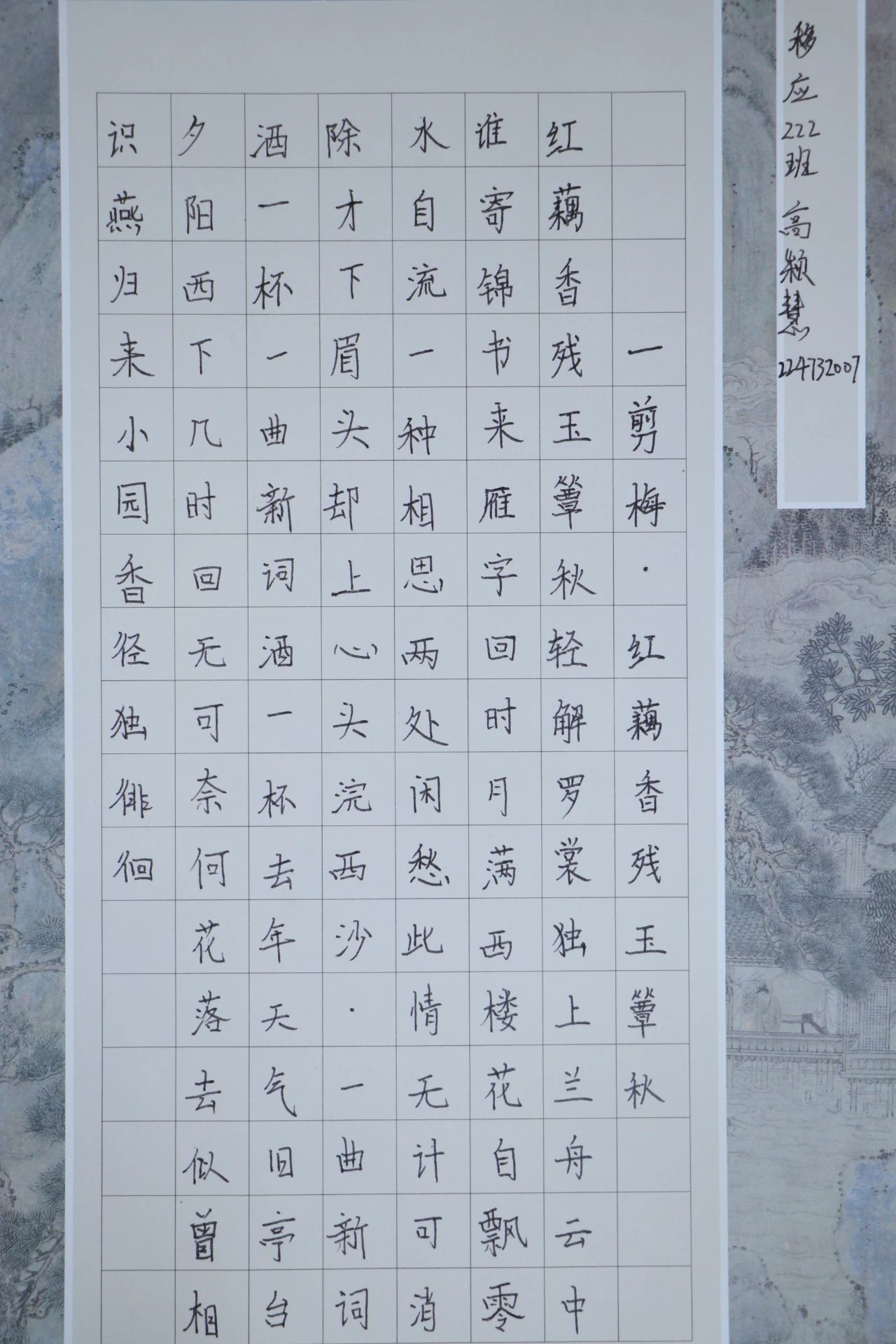 为丰富学生的课余生活,展现软件与大数据学院学子本色风采,提高综合素质,形成多样、活泼、开放、文明及积极的校园学生活动氛围,同时也为我院增光添彩,为热爱艺术的学生提供展现自我价值的平台。软件与大数据学院团总支开展“传承中华规范字,挥毫泼墨华夏情”汉字书法大赛已落下帷幕。现在,将由大家一起评选出本次人气最高的作品!