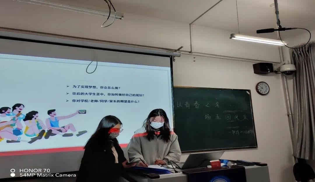 各班团支书带领同学们了解了五四青年节的来源,回顾了学生运动的事迹,讲述了疫情期间踊跃投身疫情防控阻击战广大青年的先进事迹,引发了同学们激烈的反响和热烈的讨论。同学们纷纷表达了要不畏艰难、冲锋在前、勇于探索、敢于创新,要将爱国之情转化为报国之志,继承和发扬五四精神,担负起历史重任,让五四精神放射出更加夺目的时代光芒,续写属于新时代青年的青春华章。