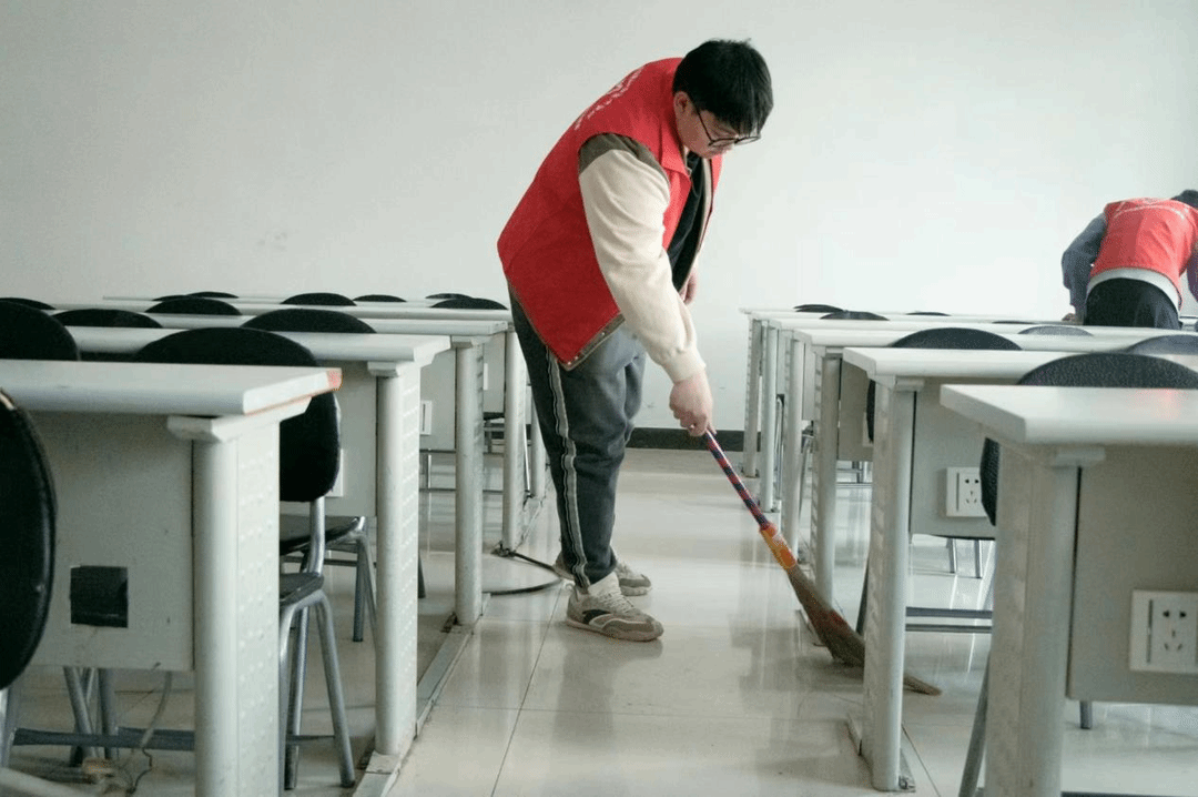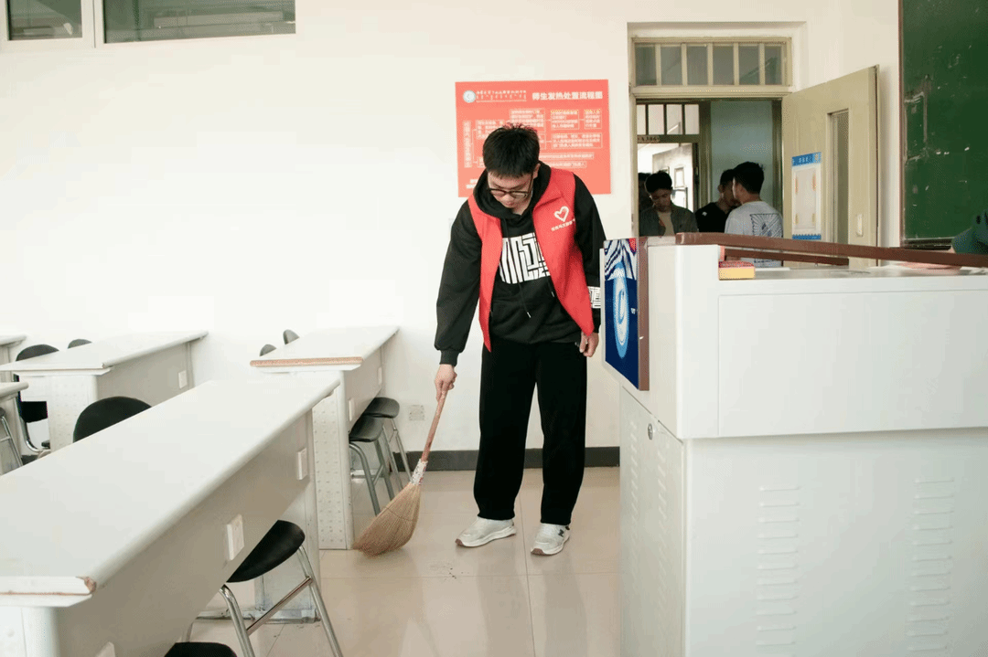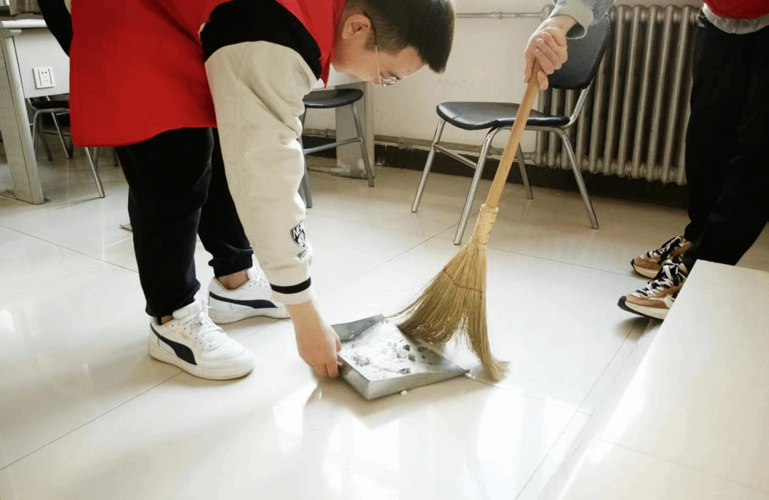 在本次活动中,志愿者们积极参与,自备了活动所需的劳动工具,如扫把、垃圾袋、抹布等。志愿者们分为5组分别清扫不同的楼层,仔细清扫每一个教室,同学们认真负责,相互配合,保证志愿活动的有序进行。