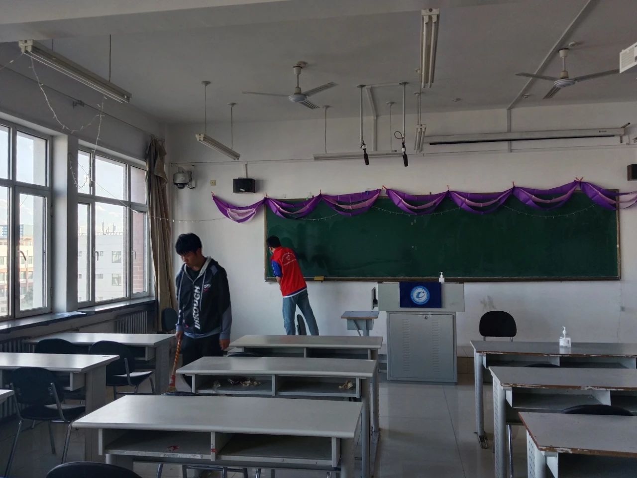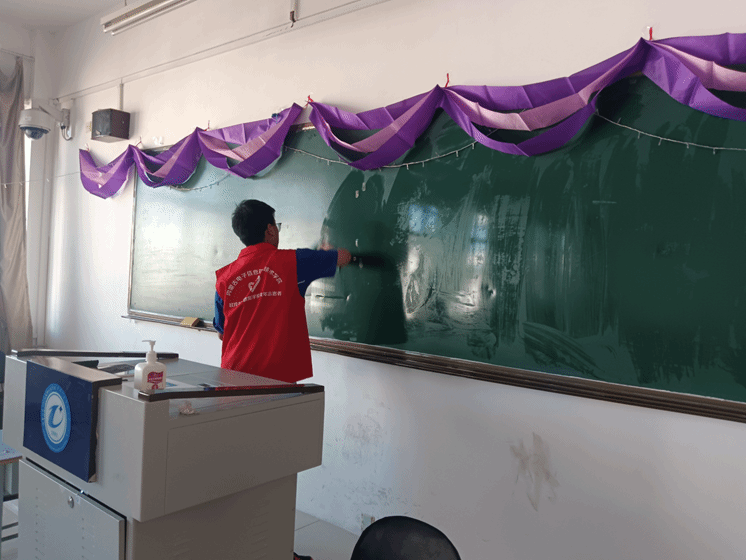 下午6点,志愿者们自带清洁工具,身着红马甲迅速到达各自负责的卫生区域投身清洁工作。他们手拿扫帚、拖布、抹布等,分工合作,将散落在教室、楼道内的各类垃圾杂物拾入垃圾袋内,并统一进行垃圾分类,最后投放到垃圾桶里。随后将教室的黑板、地面擦干净,使教学楼内展现出焕然生机,卫生环境得到了明显改善。