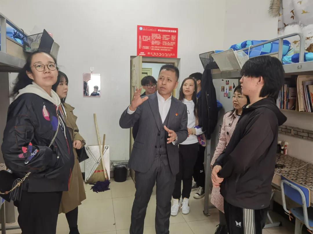 中午课后,李占岭一行在软件与大数据学院党总支副书记杨志敏、团总支书记李茜雯及辅导员郭凯琪的陪同下先后来到学校食堂和学生宿舍,与人工智能202班学生代表共同就餐,了解学生宿舍文化建设及宿舍卫生情况。走访调研中,李占岭广泛听取青年学生在学习生活等方面的建议和诉求,了解当前学校团学工作现状及学校重点工作落实情况。他勉励同学们要用积极心态面对学习和生活中的困境,与“驻校蹲班”老师保持长期联系,共同设计谋划推动班级各项工作,以主人翁的姿态为学校发展建言献策。