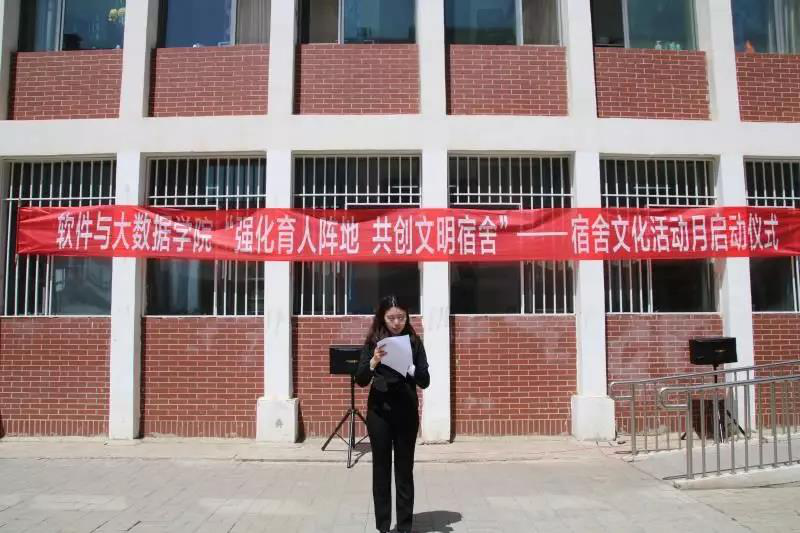 为提高我院大学生对构建社会主义和谐社会重大意识的认识,丰富大学生宿舍文化生活,提升宿舍文化品位,陶治学生情操,营造良好的育人环境。在这个鲜花盛开的四月,我们迎来了软件与大数据学院“强化育人阵地 共创文明宿舍”——第十四届宿舍文化活动。4月26日中午12:30于3号宿舍楼前启动仪式正式开始。学生工作处公寓管理科科长赵振楠老师、软件与大数据学院党总支副书记杨志敏老师、副院长田雪老师、学生科科长蔡泽华老师、团总支书记李茜雯老师以及全体辅导员出席本次启动仪式,软件各班学生均参与此次活动。