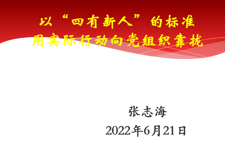 2022年6月21日晚上,软件与大数据学院党总支第九期入党积极分子培训班第二讲顺利举行,软件与大数据学院党总支副书记兼学生党支部书记张志海老师,为学员作了题为《以“四有新人”的标准,用实际行动向党组织靠拢》的专题讲座。