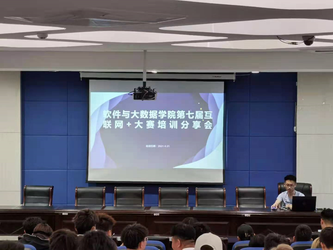 2021年4月21日下午,软件与大数据学院第七届“互联网+”创新创业大赛经验分享大会在图书馆二楼报告厅准时开讲。软件与大数据学院学生科刘钊老师、创新创业大赛项目负责人以及第六届创新创业大赛获奖的学长参加了此次讲座。