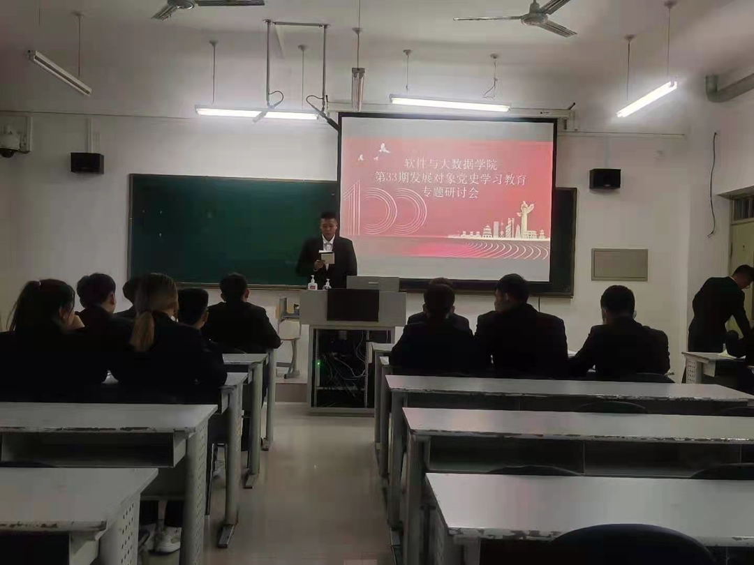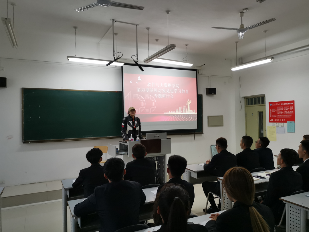 为深入贯彻习近平总书记在党史学习教育动员大会上的重要讲话精神,教育引导学生做到学史明理、学史增信、学史崇德、学史力行,做好学生发展对象的教育、培养工作,根据学校党校第33期发展对象培训班课程安排,5月9日下午,软件与大数据学院党总支在A408组织开展党史学习教育专题研讨会,会议由学生党支部教师郭凯琪主持,我院第33期全体发展对象和学校北疆先锋社学生干部参会。
