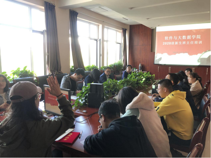 春风化雨,润物无声。2020年9月29日下午,为提升我院班主任队伍的管理能力和业务水平,强化班级为载体的思政教育阵地,切实增强育人的实效性,提高班主任工作水平,软件与大数据学院在教学楼A座201会议室举行新生班主任培训会议。田雪副院长、学生科蔡泽华科长、团总支李茜雯书记、教务科赵祯科长、全体辅导员与新生班主任参加本次培训会。培训会由田雪副院长主持进行。