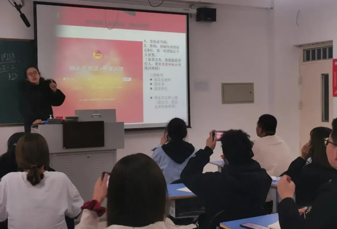 郭凯琪老师作为团总支辅导员,为班级助理解答了新生需要将团籍档案袋中重要证件带来学校。并将智慧团建的具体操作演示给各位班级助理,以便在新生转团时能够及时提供帮助。