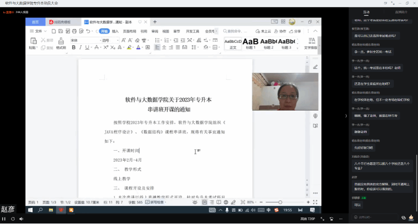赵彦主任宣读了软件与大数据学院专升本串讲班开班的通知,主要介绍了串讲时间、教学形式、课程开设和安排等内容,并对要求进行了强调。
