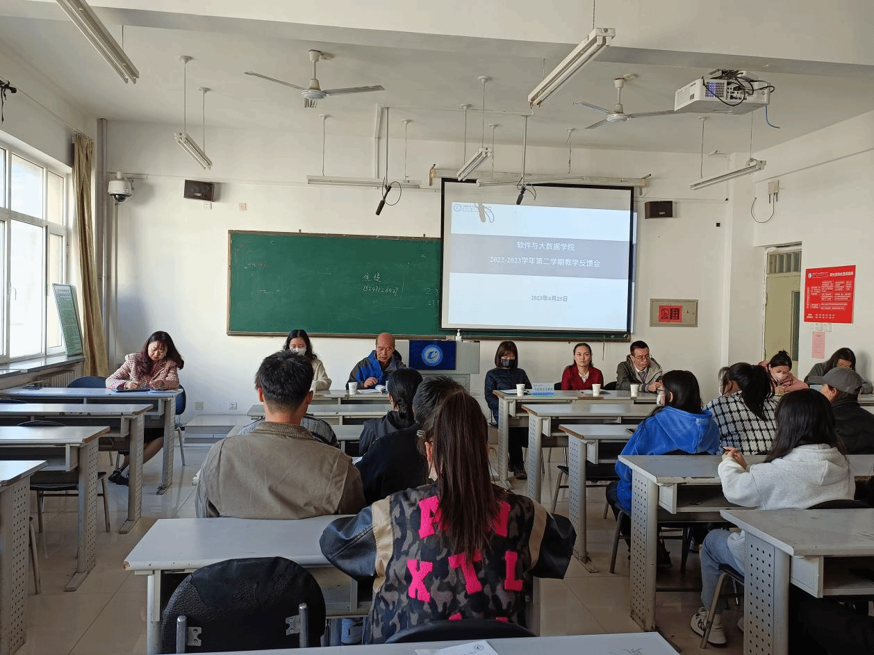 为增强师生之间的交流,全面及时了解教学情况,有针对性地采取措施,以进一步提高教学质量,形成教与学的良性互动。2023年4月25日下午16:20,软件与大数据学院组织召开2022-2023学年第二学期教学反馈会。会议由教务科吕倩主持,教学质量监控中心杨打生、马克思主义教学部刘杰、招生就业处焦佼、通识教育部周楠、软件与大数据学院移动应用开发专业负责人杨东霞、云计算技术与应用专业负责人哈里白以及各个班级的学委参加会议。
