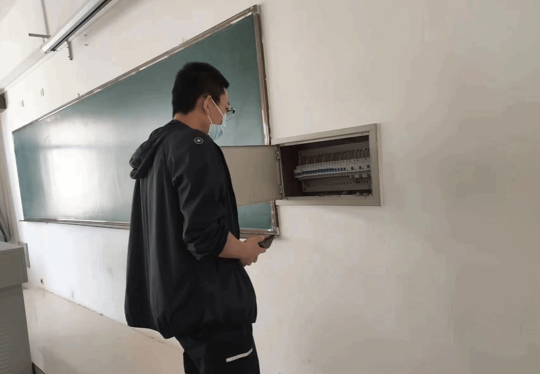 检查人员对教学楼A座的各教室、各科室办公室、会议室、学生社团工作室等区域进行逐个检查。对消防设备、公共设备设施、水、电等安全问题,进行了一次全面排查和梳理。认真检查各区域安全设施是否缺失损坏,安全出口通道是否堵塞封闭,消防设施设备功能是否正常,供电线路及设备是否安全等,对存在的隐患问题及时进行整改。严格按照工作规范和要求进行检查,将教学楼A座的安全工作措施进一步落细落实,切实维护师生安全。