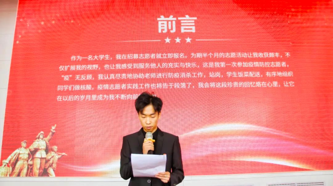 活动开始,志愿者们介绍了自己过去的经历,包括抗疫、助老、运动会等一系列志愿服务。他们迎难而上,筑起疫情坚固的防线;他们激情澎湃,积极参与无偿献血活动;他们心中有爱,热心帮助孤寡老人;他们真诚无私,保障运动会圆满结束,为软件与大数据学院增添了一道亮丽的风景线,让志愿服务精神的点点星光汇聚成璀璨星河。