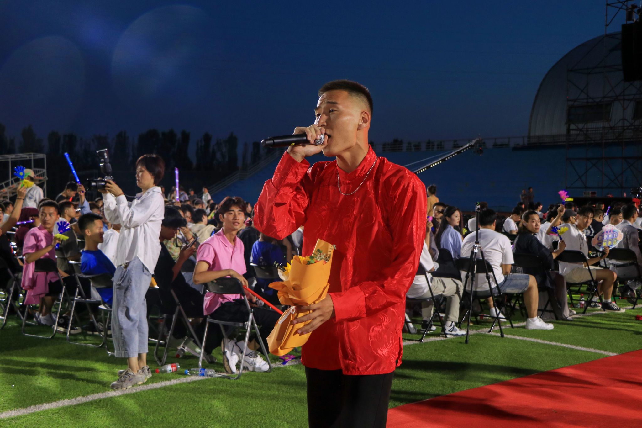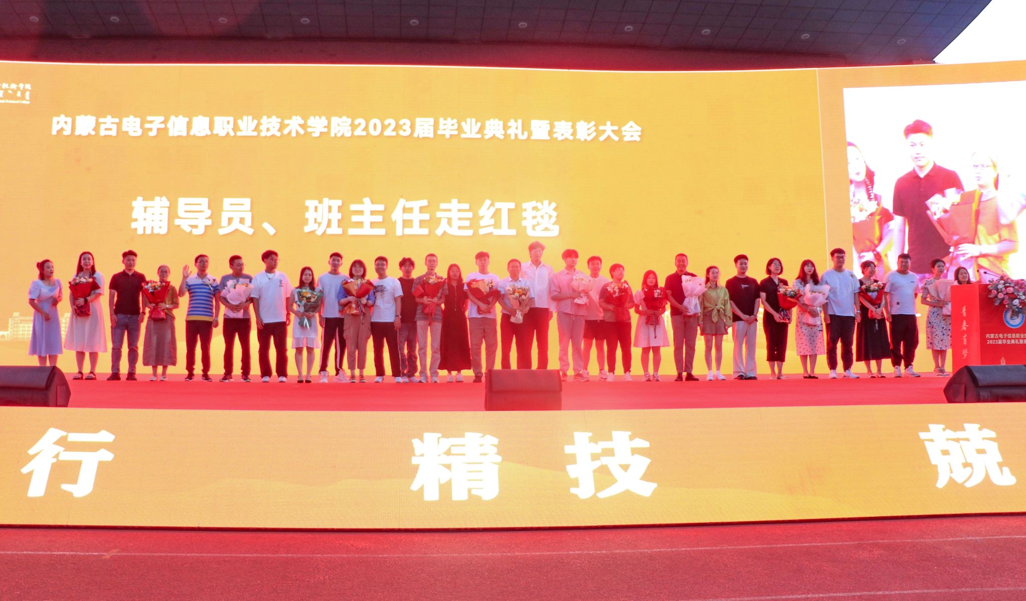 毕业晚会上,老师们为毕业生们感到骄傲和欣慰,他们脸上洋溢着喜悦和祝福的笑容。毕业生们手捧鲜花,满怀感激地向老师献花,感谢他们的辛勤付出和关爱。