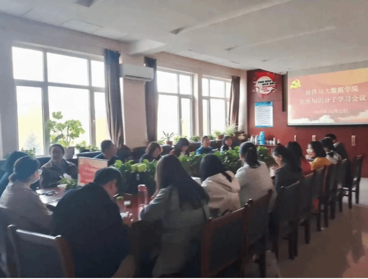 2023年10月12日下午,软件与大数据学院党总支在A201会议室召开“凝心铸魂强根基、团结奋进新征程”党外知识分子专题学习会,软件与大数据学院党总支委员会成员和全体党外知识分子参会。