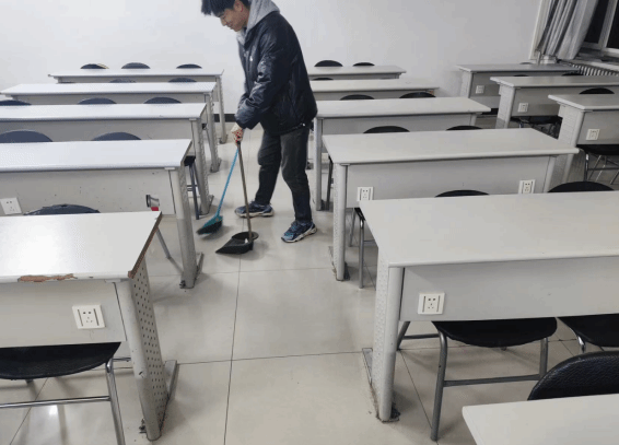 本次活动中,志愿者们拿着扫把、拖把、抹布等清洁工具,对教室黑板、地面、桌椅等进行彻底清扫,做到及时发现、及时处理、不留死角、不留痕迹。在志愿者们的默契配合下,教室里窗明几净,桌椅和黑板纤尘不染。