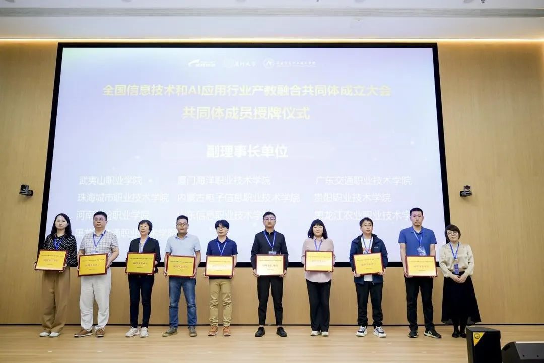 本次大会还举行了产教融合共同体理事长、副理事长单位授牌仪式及主题报告、发布共同体任务等活动。我校成为全国信息技术和AI应用行业产教融合共同体副理事长单位。