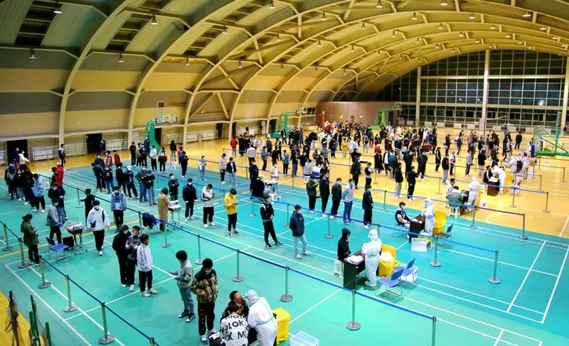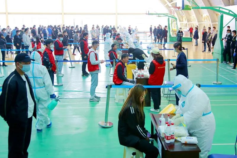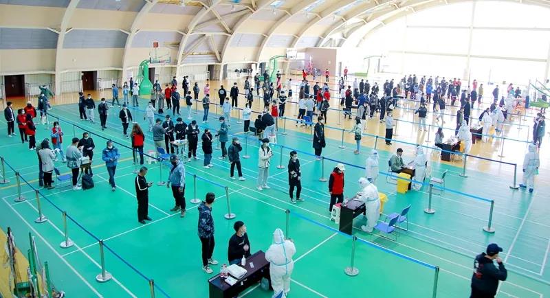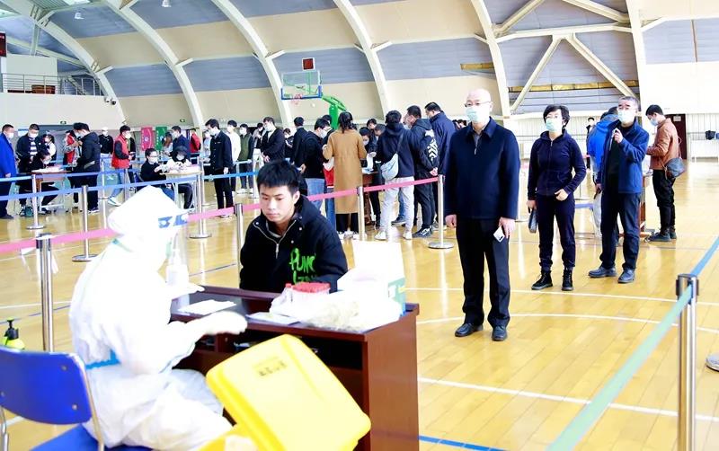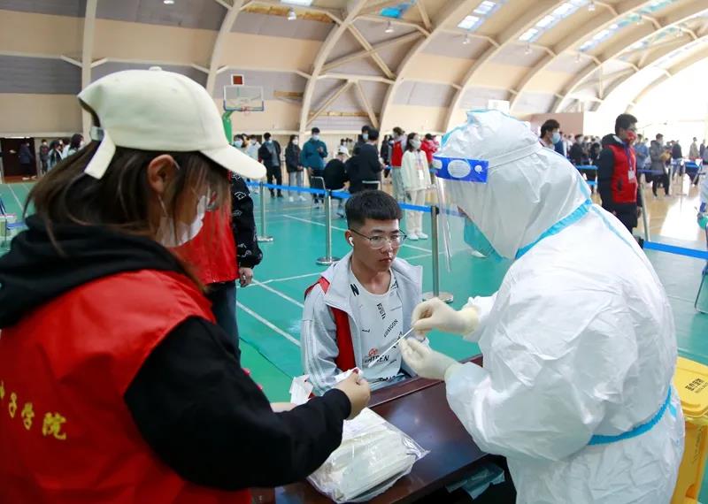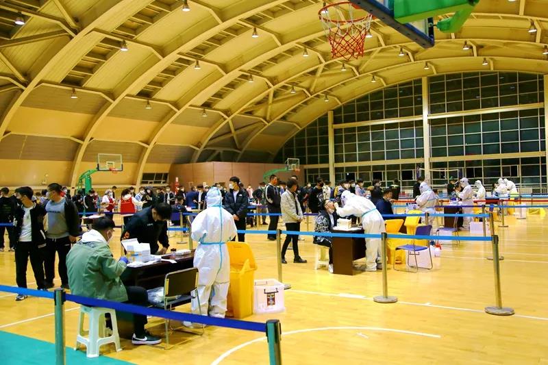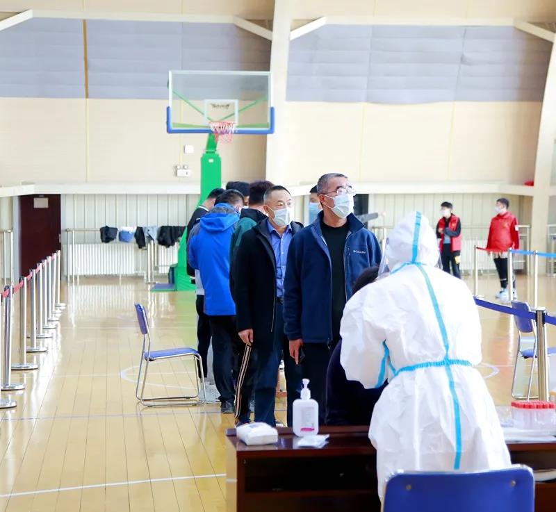 为确保检测覆盖面、提高检测效率,学校疫情防控工作领导小组第一时间安排部署,各相关部门通力合作,在短时间内摸排统计应检人员信息,提前发布有关通知和注意事项,协调人员在文体中心二楼和教师公寓布置搭建核酸检测采样点。采样现场严格按照防疫要求拉好隔离带、布置警戒线,划分出核酸检测等候区、登记区、采样区、出口区、临时隔离区等区域。前来检测的师生们提前扫码填报个人信息、生成个人二维码,并分成10组,经扫码等候、信息确认后,每人间隔1米,依次进行采样,现场秩序井然。