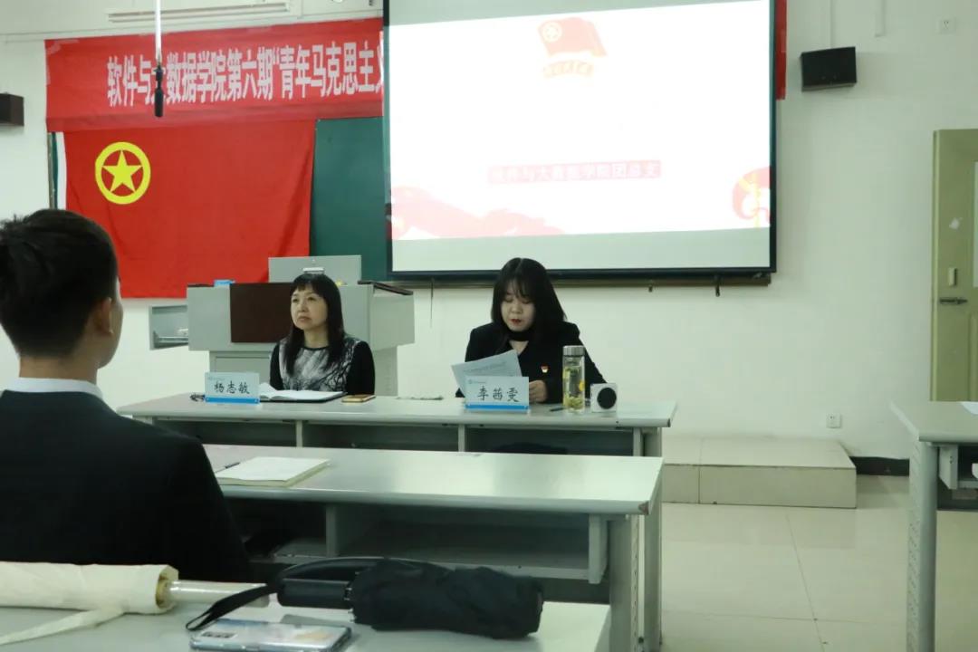 为庆祝中国共产党成立100周年,高举新时代中国特色社会主义伟大旗帜,全面贯彻习近平新时代中国特色社会主义思想和党的十九大、十九届四中、五中全会精神以及团的十八大精神,全面落实中共中央、国务院《中长期青年发展规(2016—2025年)》精神,根据共青团中央《“青年马克思主义者培养工程”实施纲要》和《内蒙古自治区“青年马克思主义者培养工程”实施方案》有关要求,扎实推进“青年马克思主义者培养工程”,积极培育和践行社会主义核心价值观,切实提高学生干部的业务能力和综合素质,促进学生干部间的学习交流,发挥学生干部的示范引领作用,软件与大数据学院团总支决定举办第六期“青年马克思主义者培养工程”暨2021年度大学生骨干培训班,并于4月1日在A508教室举办开班仪式,软件与大数据学院党总支副书记杨志敏、软件与大数据学院团总支书记李茜雯到会,我院团总支学生会学生干部及各团支部共青团干部参加。