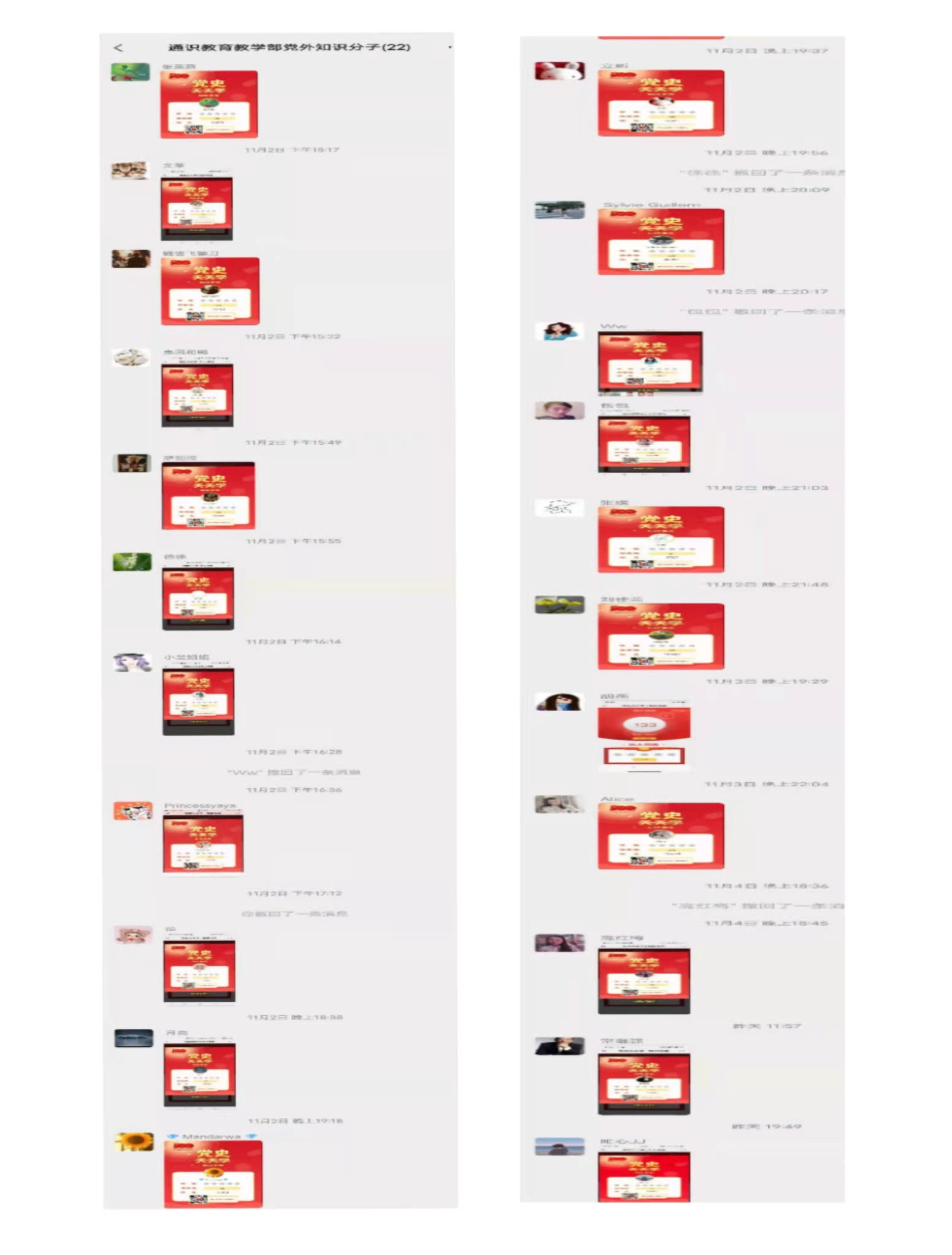 此次活动不仅加强了广大党员和党外知识分子对党史学习教育重要性的认识,同时在答题过程中激发了大家比、学、赶、帮的热情,大大增加了学习党史的积极性。短短10多天时间,党员教师的答题积分均已过百,党外知识分子的学习热情也有增无减。大家纷纷表示从线上党史答题中学习了很多党史知识,补足了“精神之钙”。