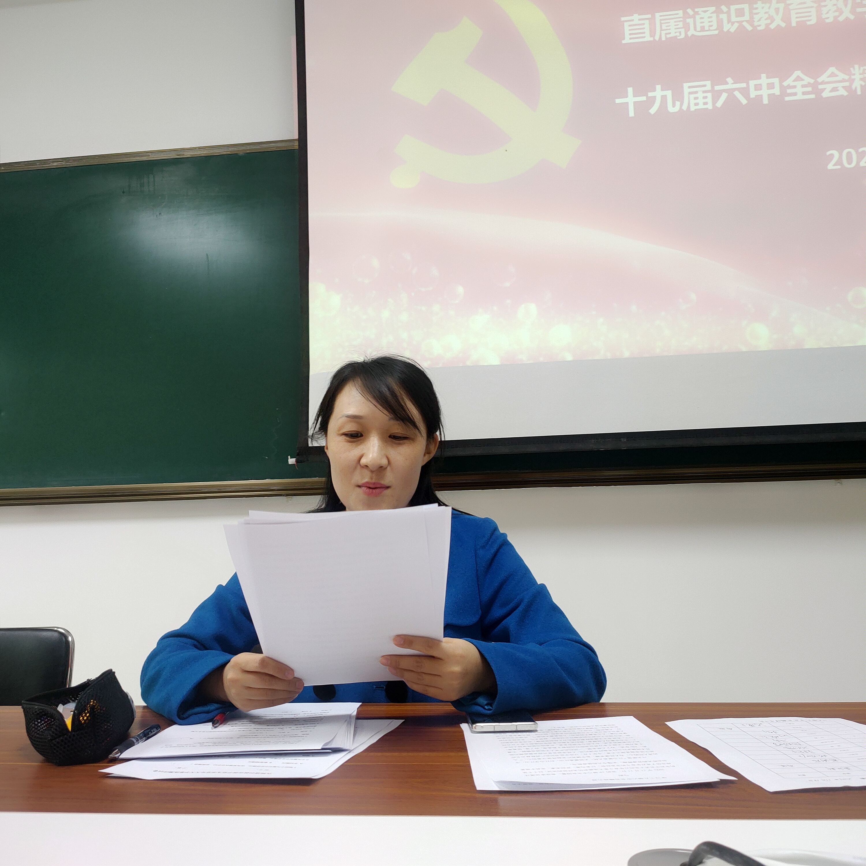 11月18日下午,直属通识教育教学党支部召开党员大会,传达学习党的十九届六中全会精神。